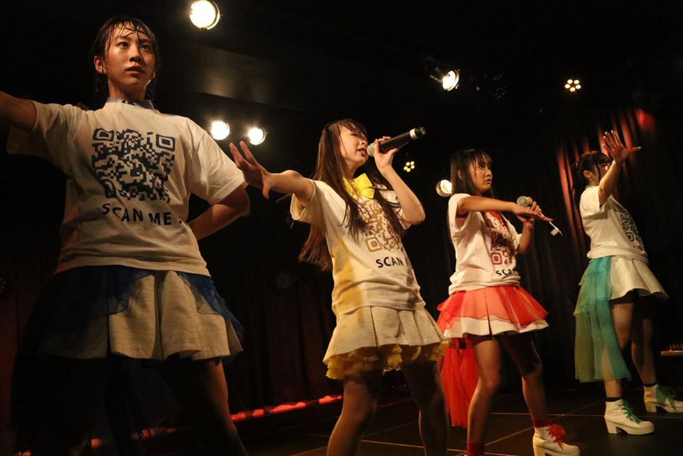最後は、今回の新曲「SCAN ME!」へ。QRコードがメンバーカラーで印刷されたお揃い(?)のTシャツを着ての登場で、なんとそのコードは実際に読み込めるという(筆者は未検だが)。メロディはこれまでのCRAYONSにはなかったもので、ダークで攻撃的な雰囲気を持った、00年代風の仕上がり。時間軸としては2周回って新奇性も感じられるものとなっていた。
