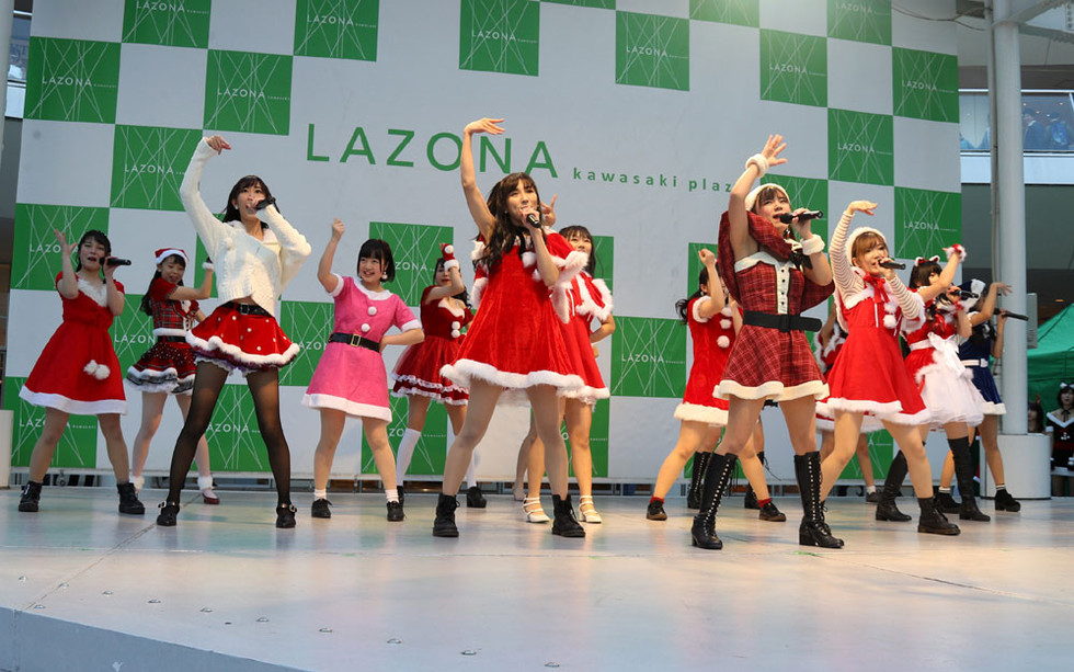 この日はクリスマス直前ということで、サンタやトナカイ衣装で登壇した彼女たち。候補生含め、全メンバー21名が揃う予定であったが、残念ながらリーダー海老原が欠席して20名の参加となった。