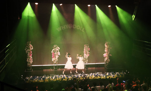 アンコールその1は、ふたりが作詞した最後の曲になる「album」。音盤としての“アルバム”と、思いの詰まった写真を張り付けた“アルバム”と、ふたつの意味をかけている。この日、この時がただ1回のライヴ披露だ。後期WHY@DOLLの音楽監督的存在で、最高の敬意をもってふたりの音楽面における成長を認めていたといっていいだろう吉田哲人が作曲した極めつけのバラード。一音も聴き逃すまいと静まる客席に、“ただ一度のライヴ歌唱”に限りないエモーションを込めるふたりの声が響き渡る。そして本当に、最後の曲は、やはり吉田のペンによる「ケ・セラ・セラ」。ファンはひまわり、クローバー、すみれなど、これまでのWHY@DOLL楽曲に出てきた花をかたどったオブジェをかかげ、途中ではテープが客席に向かって盛大に噴き出した。